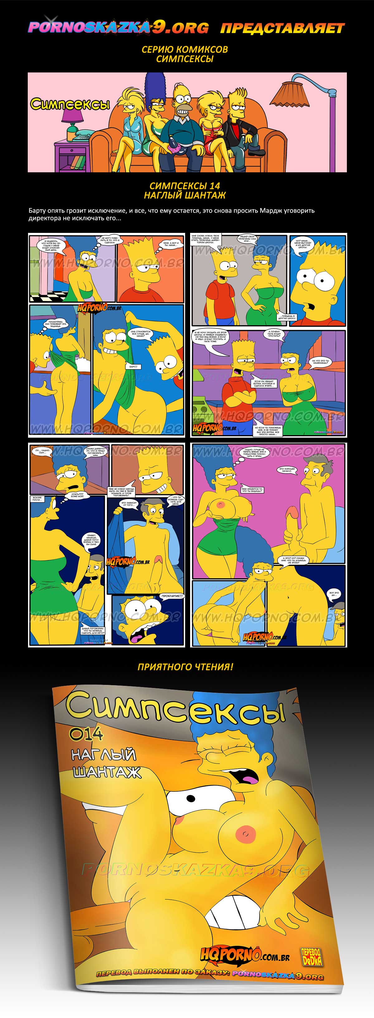 Порно комикс Симпсексы. Часть 14: Наглый шантаж. Барту опять грозит исключение, и все, что ему остается, это снова просить Мардж уговорить директора не исключать его…